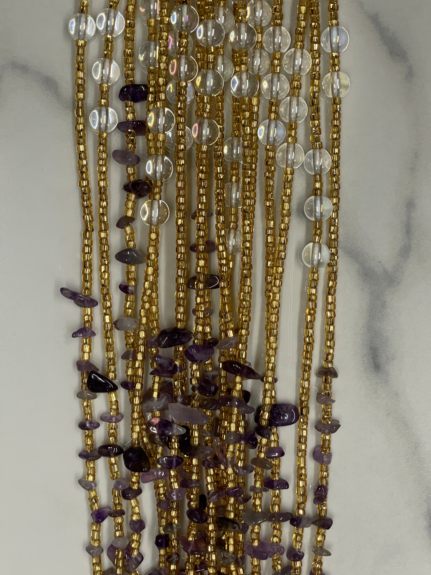 All Love - Rose Quartz Waistbead on clear strand with rhinestone charm
